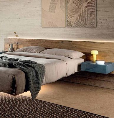 Letto Fluttua con Testata in Wildwood Naturale e Comodini Ottanio